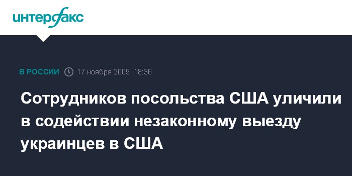 Киев. 17 ноября. INTERFAX.RU - Правоохранительные органы США и Украины раскрыли схему незаконного выезда украинцев в США, в которой принимали участие и сотрудники американского посольства.