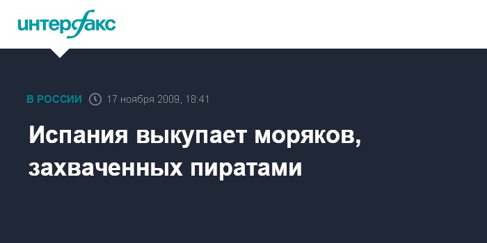 Москва. 17 ноября ИНТЕРФАКС - Испания выплатила $3,5 млн сомалийским пиратам за освобождение 36 членов экипажа судна Alakrana, сообщает во вторник Интернет-издание "Морской бюллетень".