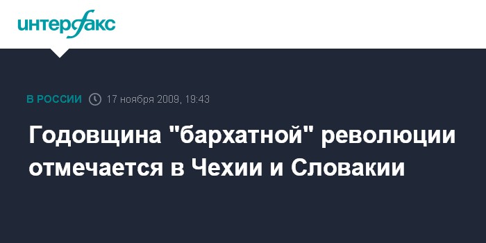 Прага/Лондон. 17 ноября. INTERFAX.RU - Чехия и Словакия во вторник отмечают 20-летие "бархатной" революции в результате которой в 1989 году коммунистическое правительство Чехословакии сложило с себя полномочия.