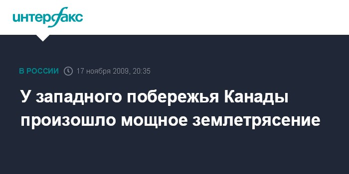 Оттава. 17 ноября. INTERFAX.RU - Землетрясение магнитудой 6,6 балла произошло во вторник у западного побережья Канады, сообщают местные СМИ
