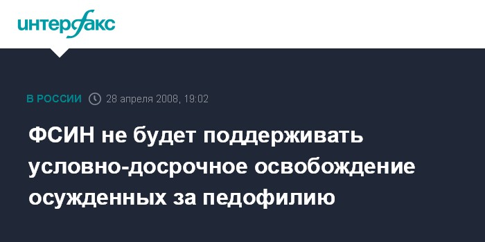 ФСИН не будет поддерживать условно-досрочное освобождение осужденных за педофилию