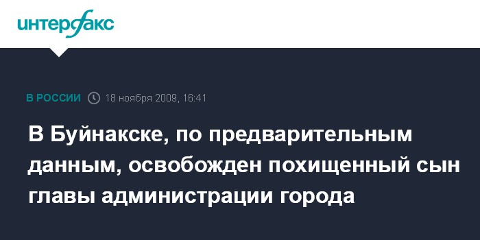 Москва. 18 ноября. INTERFAX.RU - Похищенный сын главы администрации города Буйнакска Магомадшамиля Шахбанова, по предварительным данным, освобожден. "Согласно поступившей предварительной информации, в настоящее время проводится реализация мероприятий по освобождению похищенного сына главы администрации г.Буйнакска. Согласно неподтвержденной информации, его удалось освободить, а лица, подозреваемые в похищении, задержаны", - сообщил агентству "Интерфакс-Юг" источник в правоохранительных органах Дагестана.
