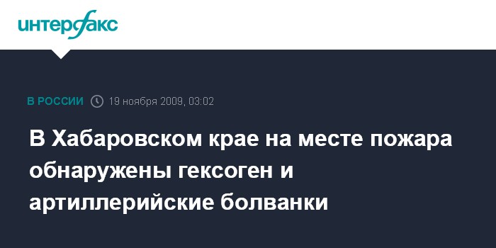 В Хабаровском крае на месте пожара обнаружены гексоген и артиллерийские болванки