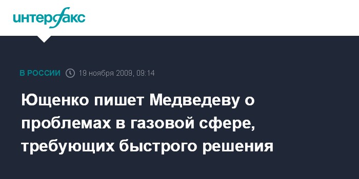 Москва. 19 ноября. INTERFAX.RU - Президент Украины Виктор Ющенко обратил внимание президента РФ Дмитрия Медведева на ряд проблем, требующих безотлагательного решения с целью налаживания взаимовыгодного сотрудничества газовой сфере.