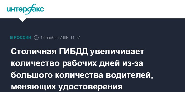 Москва. 19 ноября. INTERFAX.RU - В связи со значительно увеличившимся количеством обращений граждан в подразделения столичной ГИБДД по вопросам замены водительских удостоверений с 23 ноября подразделения автоинспекции, отвечающие за выдачу новых "прав", начнут работать на день больше, сообщил "Интерфаксу" заместитель начальника отдела пропаганды безопасности дорожного движения ГИБДД Москвы Вячеслав Трубин в четверг.
