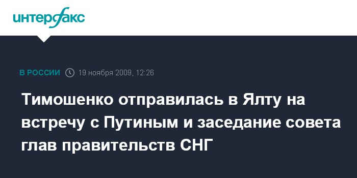 Тимошенко отправилась в Ялту на встречу с Путиным и заседание совета глав правительств СНГ