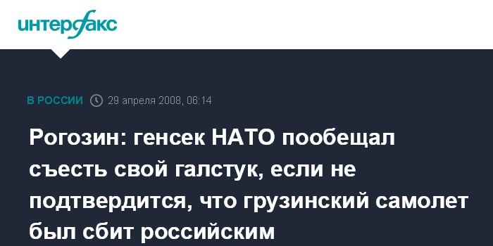 Рогозин: генсек НАТО пообещал съесть свой галстук, если не подтвердится, что грузинский самолет был сбит российским