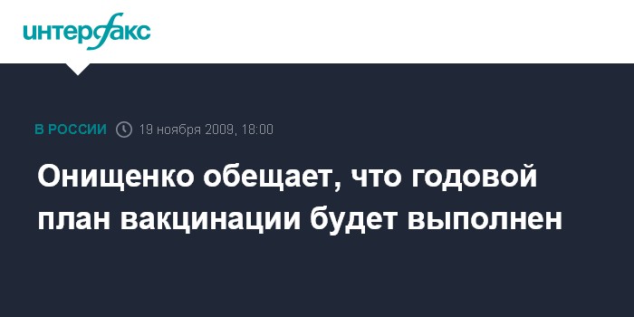 Москва. 19 ноября. INTERFAX.RU - Глава Роспотребнадзора Геннадий Онищенко доволен тем, как идет вакцинация в этом году.