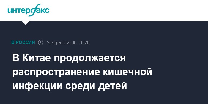 Пекин. 29 апреля. INTERFAX.RU - Кишечная инфекция, вызываемая вирусом Enterovirus71, продолжает активно распространяться в городе Фуян центральной китайской провинции Аньхой, число скончавшихся в результате заражения детей выросло до 20 человек.