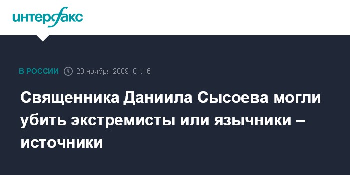 Москва. 20 ноября. ИНТЕРФАКС - Наиболее вероятной версией убийства московского священника Даниила Сысоева является его миссионерская деятельность среди неправославного населения России, сообщил "Интерфаксу" источник в правоохранительных органах.