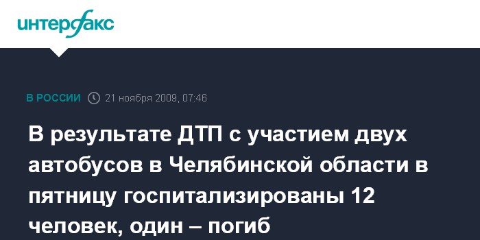 В результате ДТП с участием двух автобусов в Челябинской области в пятницу госпитализированы 12 человек, один – погиб