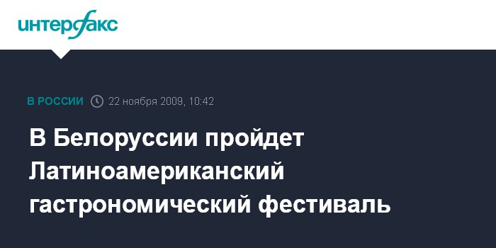 Минск. 22 ноября. INTERFAX.RU - Первый Латиноамериканский гастрономический фестиваль пройдет с 23 по 29 ноября в Минске, сообщили агентству "Интерфакс-Запад" в посольстве Венесуэлы в Белоруссии. "Инициаторами проведения гастрономического фестиваля выступают дипломатические миссии Венесуэлы и Кубы в Белоруссии. В ходе мероприятий, которые продлятся почти неделю, блюда, которые готовят в странах Латинской Америки, можно будет продегустировать", - отметили в посольстве.