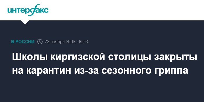 Как сообщили в понедельник "Интерфаксу" в бишкекском управлении образования и молодежной политики, решение о карантине принято на основании рекомендаций городского многосекторального комитета по особо опасным и карантинным инфекциям.