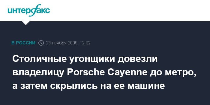 Столичные угонщики довезли владелицу Porsche Cayenne до метро, а затем скрылись на ее машине