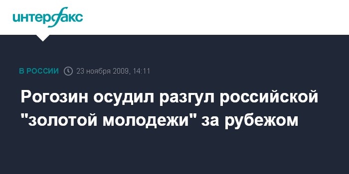 Москва. 23 ноября. INTERFAX.RU - Действия российской "золотой молодежи" за рубежом могут подорвать имидж России, считает постпред РФ при НАТО Дмитрий Рогозин.