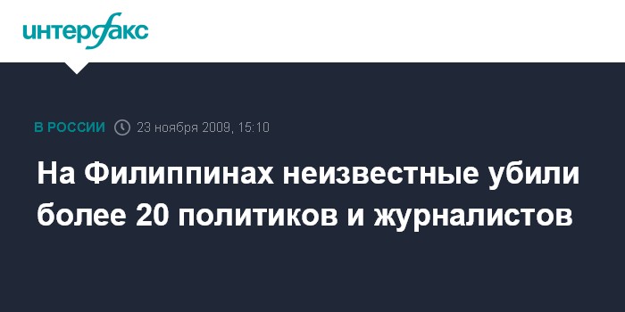 Лондон. 23 ноября. INTERFAX.RU - Группа вооруженных людей убила на юге Филиппин 21 политика и журналиста, сообщает BBC.