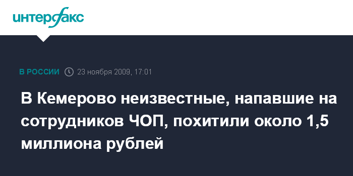 В Кемерово неизвестные, напавшие на сотрудников ЧОП, похитили около 1,5 миллиона рублей