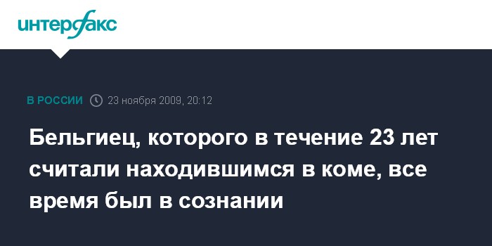 Лондон. 23 ноября. INTERFAX.RU - Бельгиец Ром Хоубен, который, как считали врачи, находился в коме в течение 23 лет, все это время был в сознании, сообщил в понедельник британский телеканал Sky News.