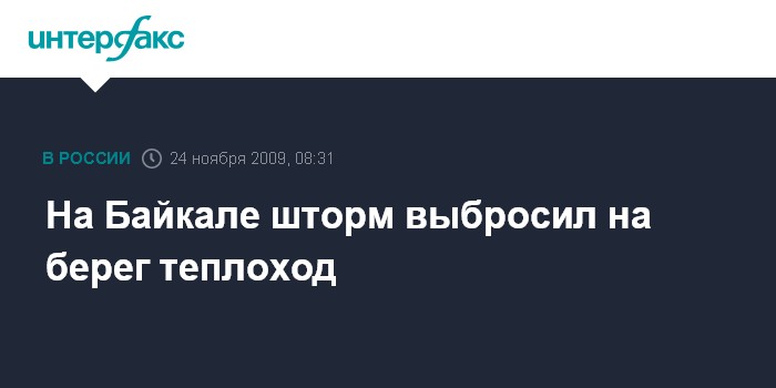Москва. 24 ноября. INTERFAX.RU - Шторм на Байкале выбросил на берег в районе мыса Покойники теплоход, следовавший с грузом для метеостанции, пострадавших нет.