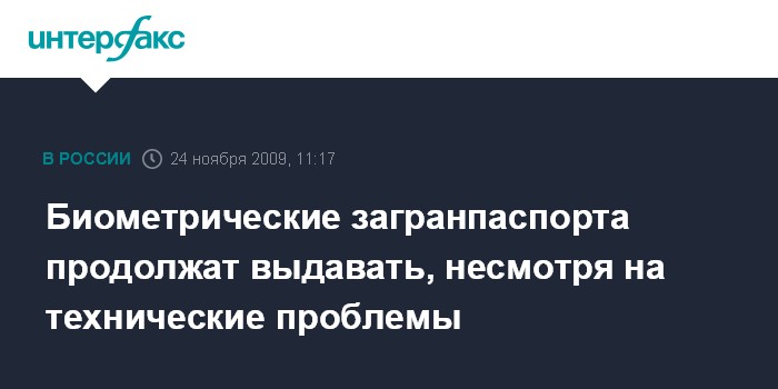 Москва. 24 ноября. INTERFAX.RU - Системе выдачи биометрических загранпаспортов не грозит остановка, но есть технические проблемы, которые должны быть устранены, заявили в Федеральной миграционной службе (ФМС) России.