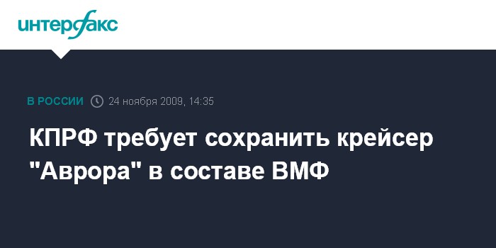 Москва. 24 ноября. INTERFAX.RU - Руководство КПРФ выступило с заявлением, в котором осуждает возможность вывода крейсера "Аврора" из состава Военно-Морского флота РФ.
