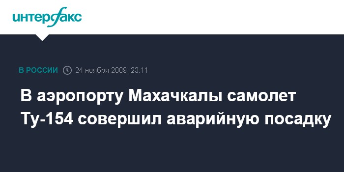 Ростов-на-Дону. 24 ноября. ИНТЕРФАКС - Самолет Ту-154, выполнявший рейс из Махачкалы в Шаржу (ОАЭ), благополучно совершил вынужденную посадку в столице Дагестана, сообщили агентству "Интерфакс-Юг" в администрации аэропорта "Махачкала".