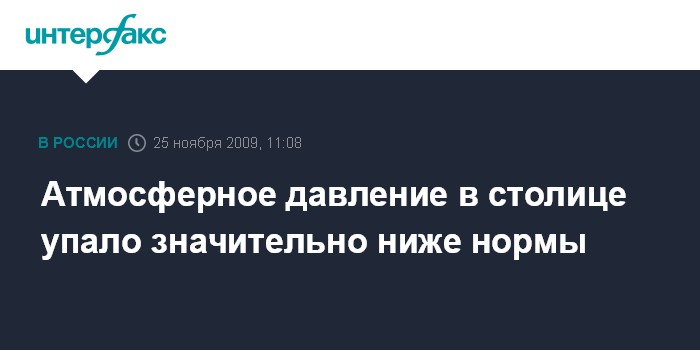 Москва. 25 ноября. INTERFAX.RU - Уже вторые сутки в Москве наблюдается очень низкое давление. Как отмечают специалисты Метеобюро Москвы и Московской области, причины этого кроются в прибывшем в регион с юго-запада циклоне, который заметно влияет на фон давления не только в столичной области, но и во всей европейской половине России.