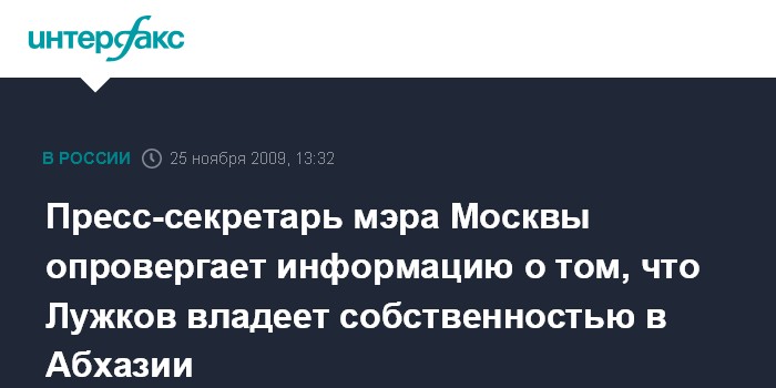 Пресс-секретарь мэра Москвы опровергает информацию о том, что Лужков владеет собственностью в Абхазии