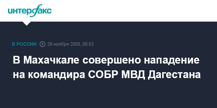 Москва. 26 ноября. INTERFAX.RU - В Махачкале командир СОБР МВД Дагестана получил ранение в результате нападения на него неизвестными.