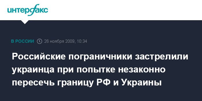 Москва. 26 ноября. INTERFAX.RU - Российские пограничники застрелили украинца при попытке незаконно пересечь российско-украинскую границу. Как сообщили агентству "Интерфакс-Украина" в украинских правоохранительных органах, инцидент произошел в ночь на четверг в 5 метрах от государственной границы.