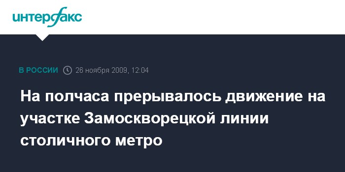 Москва. 26 ноября. INTERFAX.RU - Техническая неисправность системы оборудования на Замоскворецкой линии московского метро в четверг днем привела к сбою в движении поездов, сообщили "Интерфаксу" в пресс-службе столичной подземки.