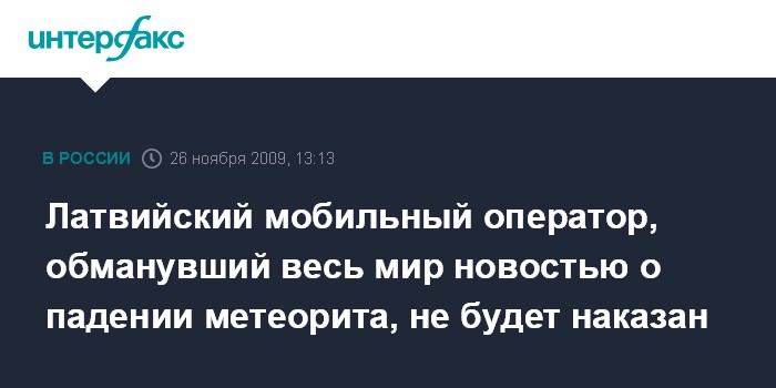 Латвийский мобильный оператор, обманувший весь мир новостью о падении метеорита, не будет наказан