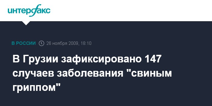Тбилиси. 26 ноября. NTERFAX.RU - В Грузии за сутки лабораторно подтверждены 27 новых случаев заболевания вирусом "свиного гриппа", заявил в четверг журналистам замдиректора Национального центра Грузии по контролю за заболеваниями Шота Цанава.
