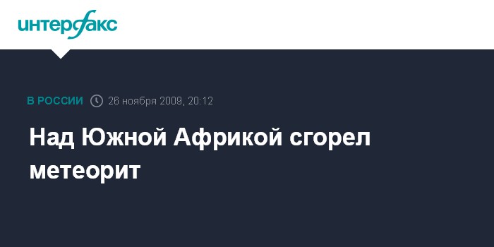 Женева. 26 ноября. INTERFAX.RU - Метеорит едва не столкнулся с землей на юге Африки. Как сообщило в четверг швейцарское издание "24 часа" со ссылкой на южноафриканского астронома, небесное тело пронеслось всего в 90 км от земной поверхности в ночь с субботы на воскресенье. Жители южнофриканских городов Претории и Йоханнесбурга могли наблюдать, как гигантский светящийся болид прорезал ночное небо.