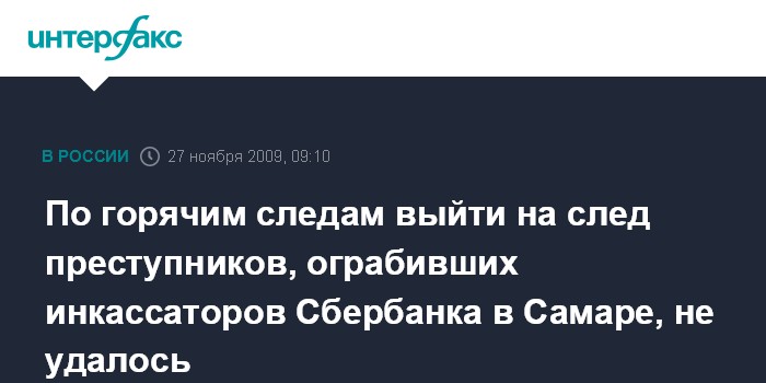 Москва. 27 ноября. INTERFAX.RU – Преступники, напавшие в четверг утром на инкассаторов Сбербанка и укравшие 16,5 млн рублей, так и не были задержаны в ходе операции "Перехват".