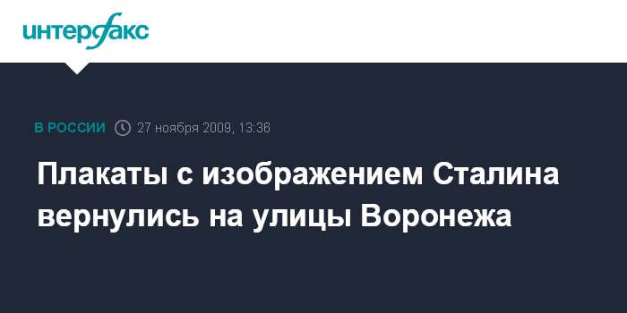 Воронеж. 27 ноября. INTERFAX.RU - Воронежские коммунисты снова разместили плакаты с изображением Иосифа Сталина на улицах города, сообщил "Интерфаксу" в пятницу депутат облдумы от фракции КПРФ Андрей Рогатнев.