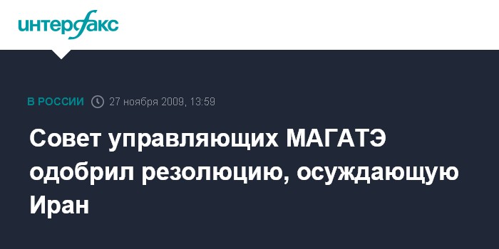 Вена. 27 ноября. INTERFAX.RU - Совет управляющих Международного агентства по атомной энергии (МАГАТЭ) одобрил резолюцию, осуждающую иранскую ядерную программу, сообщает в пятницу агентство ЭФЭ.