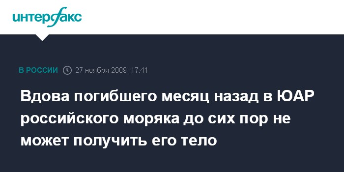 Санкт-Петербург. 27 ноября. INTERFAX.RU - Пулковская таможня (Петербург) передаст жене погибшего в ЮАР моряка гроб с телом мужа, как только получит необходимые для оформления "груза 200" документы.