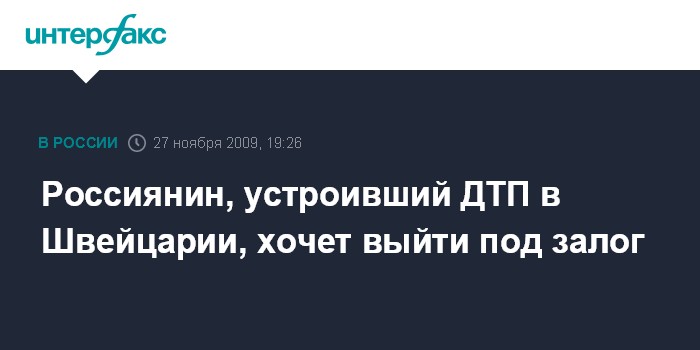 Россиянин, устроивший ДТП в Швейцарии, хочет выйти под залог