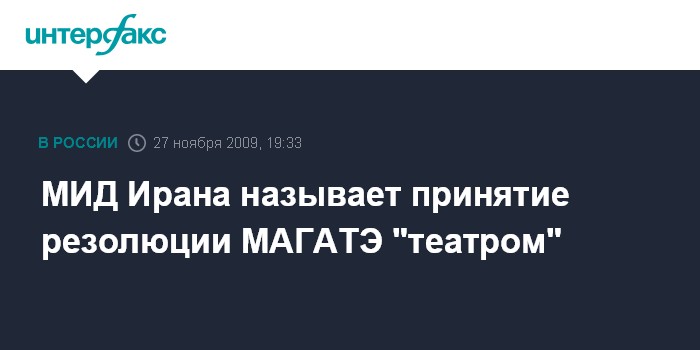 Тегеран. 27 ноября. INTERFAX.RU - МИД Исламской республики Иран назвал в пятницу "бесполезной" принятую резолюцию Международного агентства по атомной энергии (МАГАТЭ).