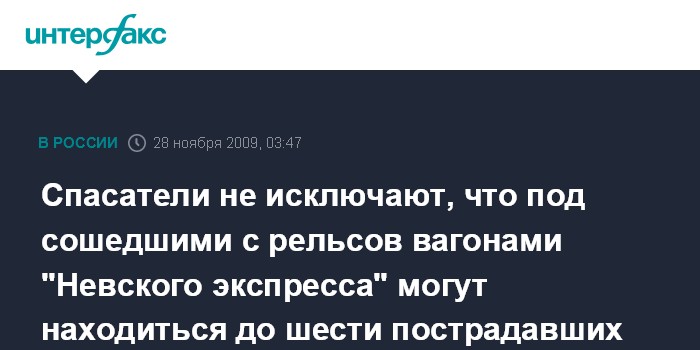 Москва. 28 ноября. ИНТЕРФАКС - От четырех до шести человек могут находится под завалившимися вагонами поезда "Невский экспресс", потерпевшего крушение в Тверской области.