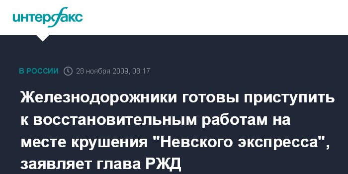Железнодорожники готовы приступить к восстановительным работам на месте крушения "Невского экспресса", заявляет глава РЖД