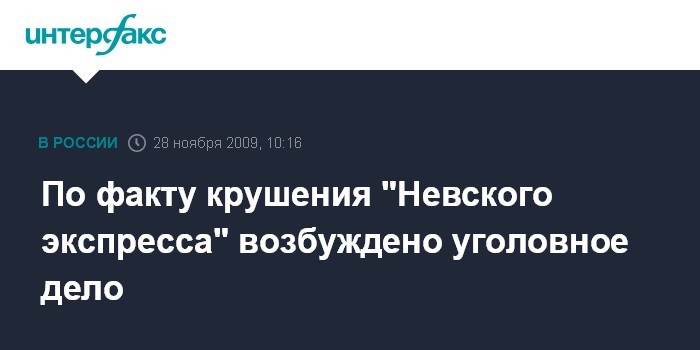 По факту крушения "Невского экспресса" возбуждено уголовное дело