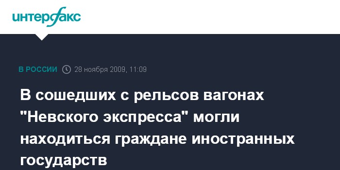 Москва. 28 ноября INTERFAX.RU - В сошедших с рельсов вагонах поезда Москва - Санкт-Петербург могли находиться граждане иностранных государств.