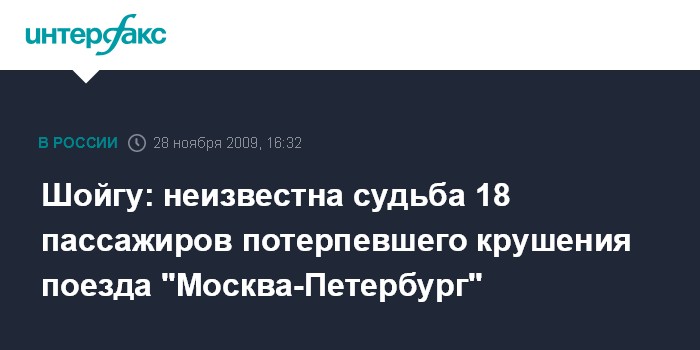 Москва. 28 ноября INTERFAX.RU - Судьба 18 пассажиров "Невского экспресса", которые пока не обнаружены, продолжает оставаться неизвестной.