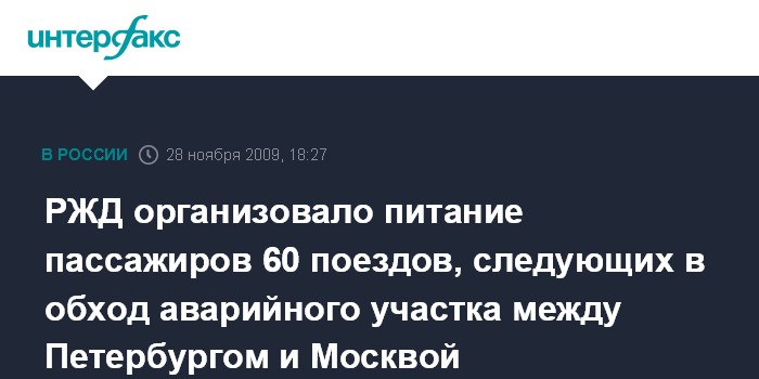 РЖД организовало питание пассажиров 60 поездов, следующих в обход аварийного участка между Петербургом и Москвой
