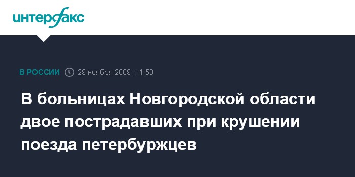 В больницах Новгородской области двое пострадавших при крушении поезда петербуржцев