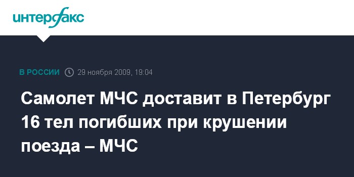 Самолет МЧС доставит в Петербург 16 тел погибших при крушении поезда – МЧС