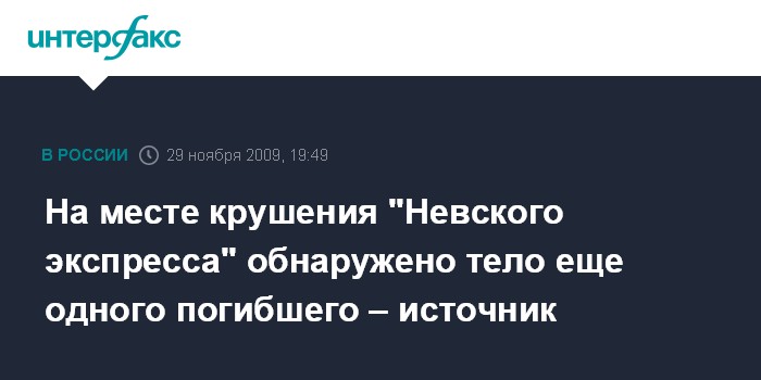 На месте крушения "Невского экспресса" обнаружено тело еще одного погибшего – источник