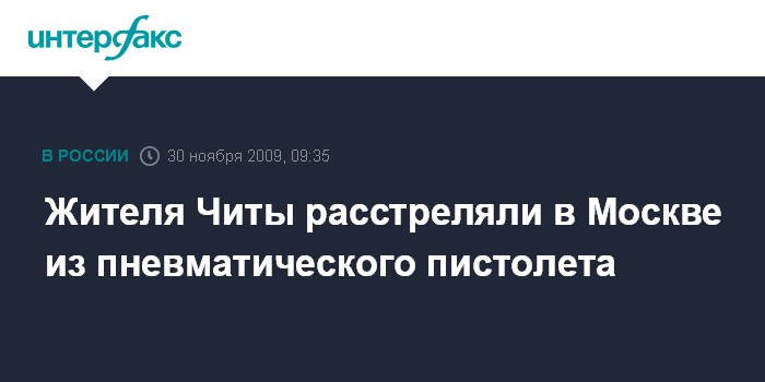 Москва. 30 ноября. INTERFAX.RU - На востоке столицы был обнаружен труп жителя Читы с пятью ранениями из пневматического пистолета, сообщил "Интерфаксу" в понедельник источник в правоохранительных органах города.